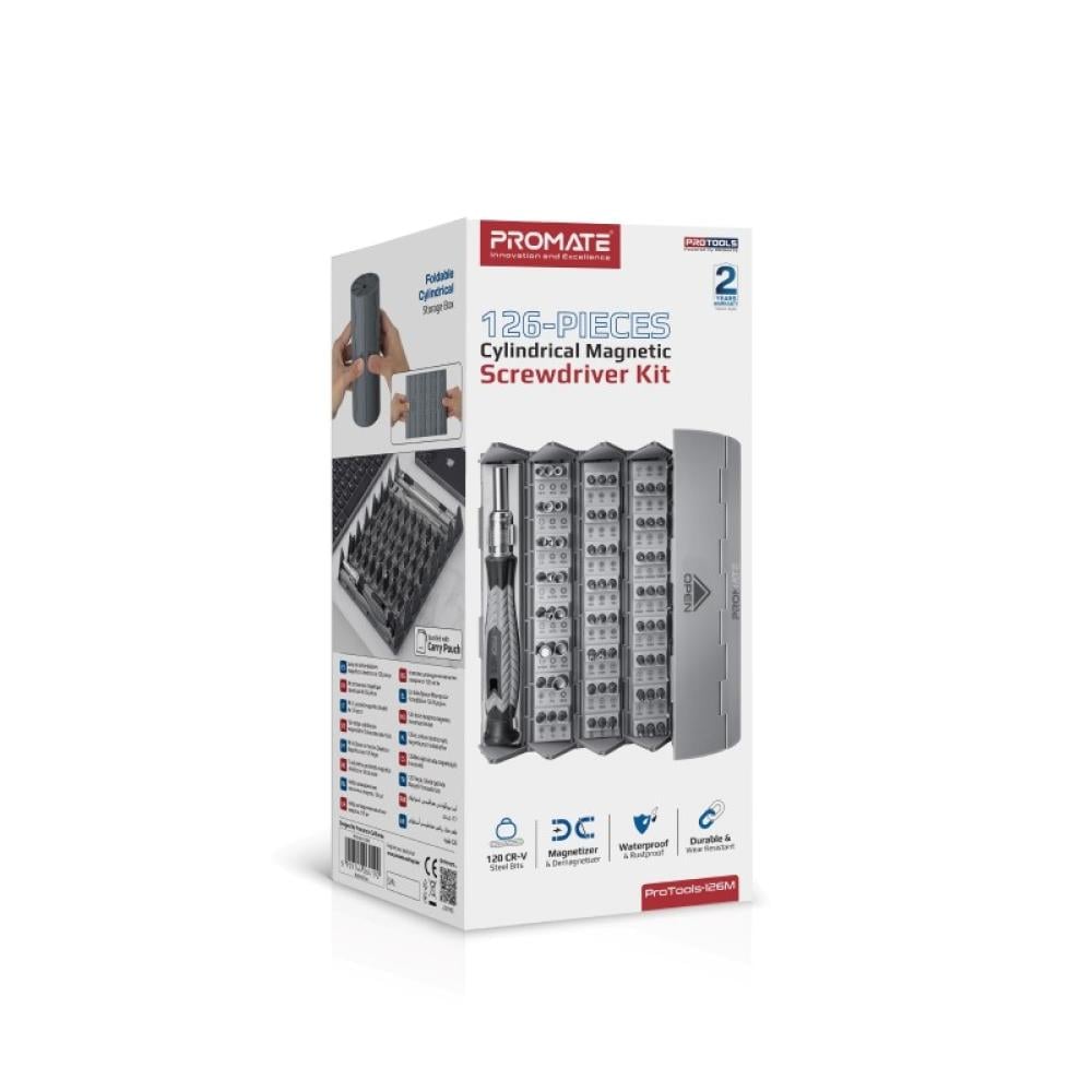 طقم المفكات المغناطيسية ProTools-126M من بروميت هو الحل المثالي لأي مشروع صيانة أو إصلاح. يتضمن الطقم 126 قطعة، بما في ذلك 120 لقمة مفكات براغي مصنوعة من الفولاذ CRV وطرف مفك براغي مغناطيسي. يأتي الطقم مع صندوق تخزين أسطواني قابل للطي، ومقبض مريح مضاد للانزلاق، مما يجعل العمل أسهل وأكثر راحة. بفضل تصميمه المدمج والمتين، يعد هذا الطقم خيارًا ممتازًا لجميع احتياجاتك في الصيانة والأدوات.