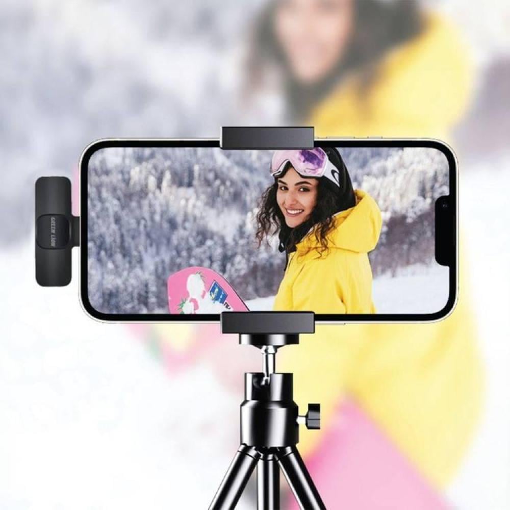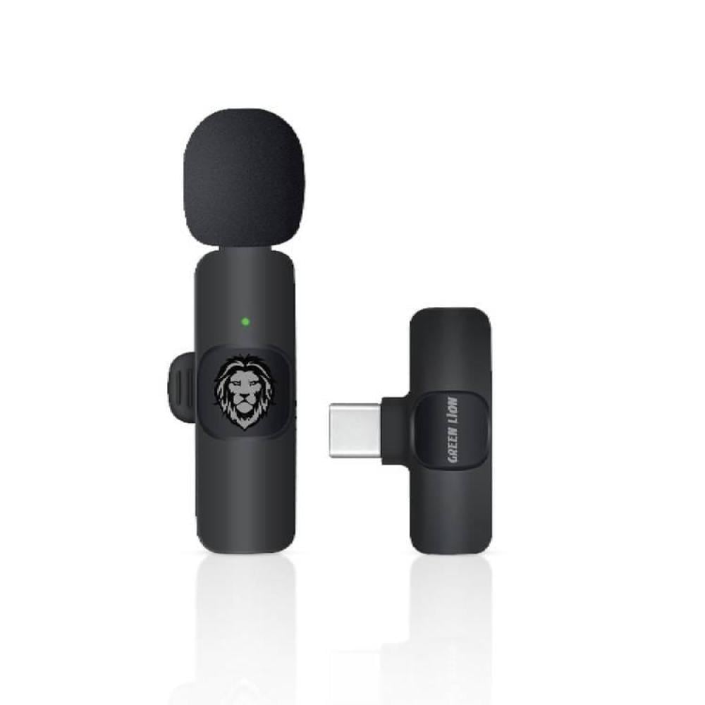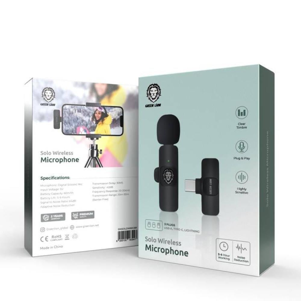 ميكروفون لاسلكي Green Lion Solo مع خاصية تقليل الضوضاء التكيفية، صوت محيطي 360 درجة، حساس للغاية، صوت واضح، راديو دقيق، عمر بطارية من 5 إلى 6 ساعات - أسود